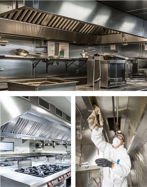 Kitchen Exhaust Hood Cleaning is the process of removing grease, accumulated residue, and other contaminants from the exhaust hoods, ducts, fans, and vents of commercial kitchen exhaust systems. These systems are crucial for removing smoke, heat, and grease vapors produced during cooking in commercial kitchens, but over time, the grease and debris can build up, creating fire hazards and compromising the efficiency of the ventilation system. It helps ensure the proper functioning of the ventilation system, reduces odors, and extends the lifespan of equipment.
